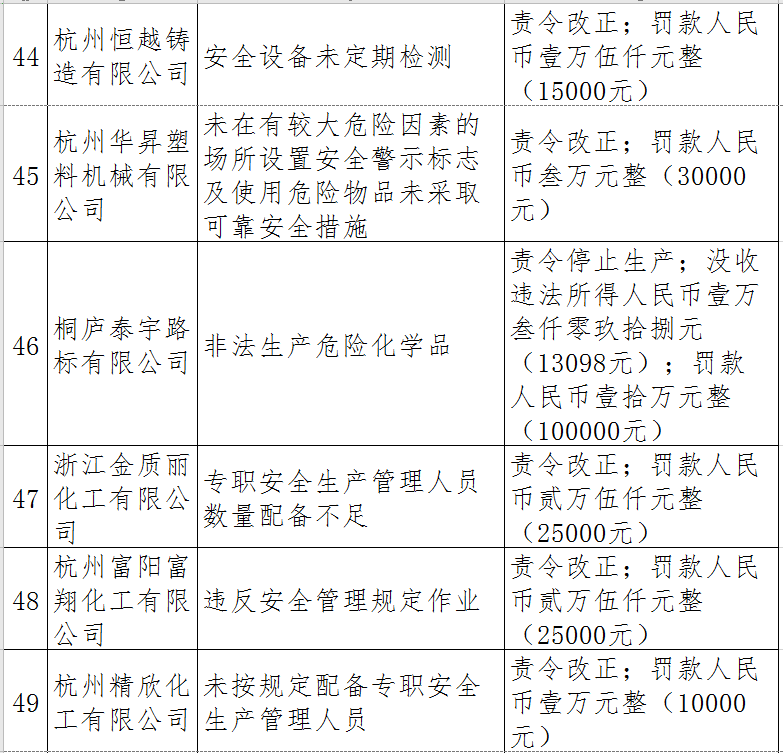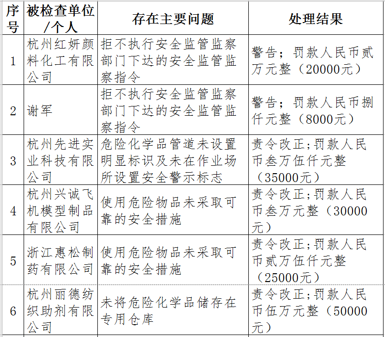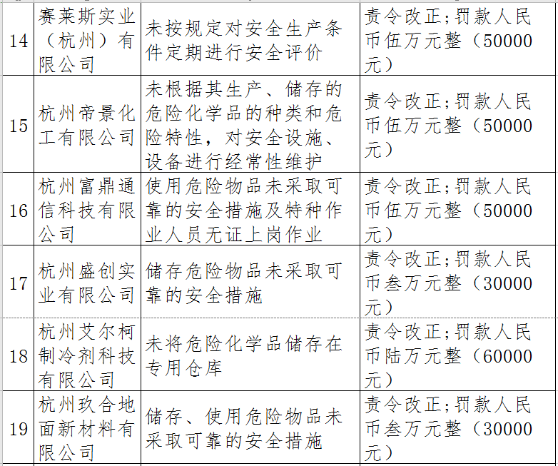 近日,杭州市應(yīng)急管理局對50多家被行政處罰的企業(yè)(個人)進(jìn)行曝光