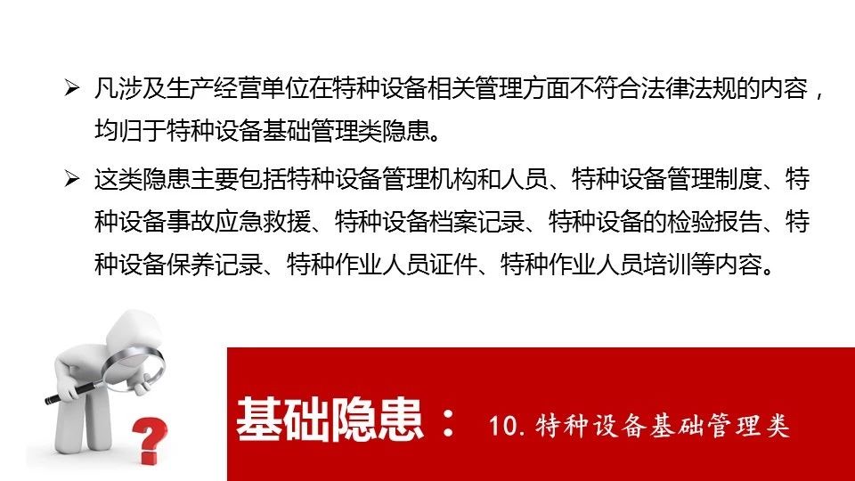 18 | 危險物品的容器、運輸工具,以及涉及人身安全、危險性較大的海洋石油開采特種設(shè)備和礦山井下特種設(shè)備未經(jīng)具有專業(yè)資質(zhì)的機(jī)構(gòu)檢測、檢驗合格,取得安全使用證或者安全標(biāo)志,投入使用的 |