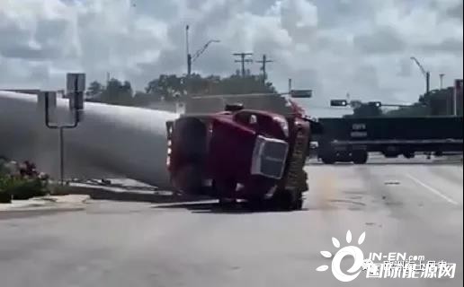 近日,美國得克薩斯州發(fā)生一起事故。一輛風機葉片運輸車轉彎時遇到困難,恰好停在了鐵道口。