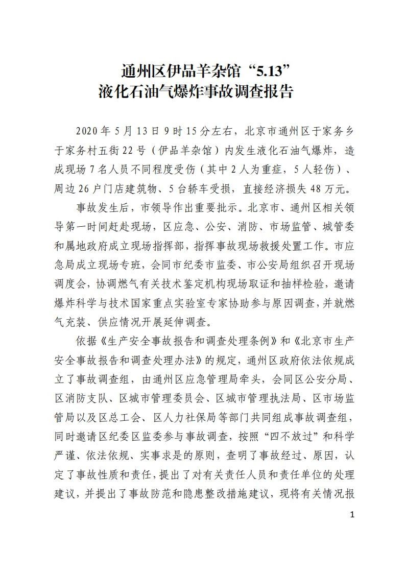 造成7人受傷,26戶建筑物、5輛汽車受損的北京市通州區(qū)伊品羊雜館“5.13”液化石油氣爆炸事故調(diào)查報(bào)告,來了!