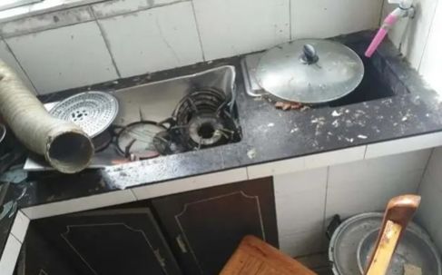 趕緊跑進(jìn)廚房查看,發(fā)現(xiàn)灶上的高壓鍋發(fā)生爆炸。廚房里的灶臺(tái)、櫥柜、排煙管皆被震碎,現(xiàn)場(chǎng)一片狼藉,