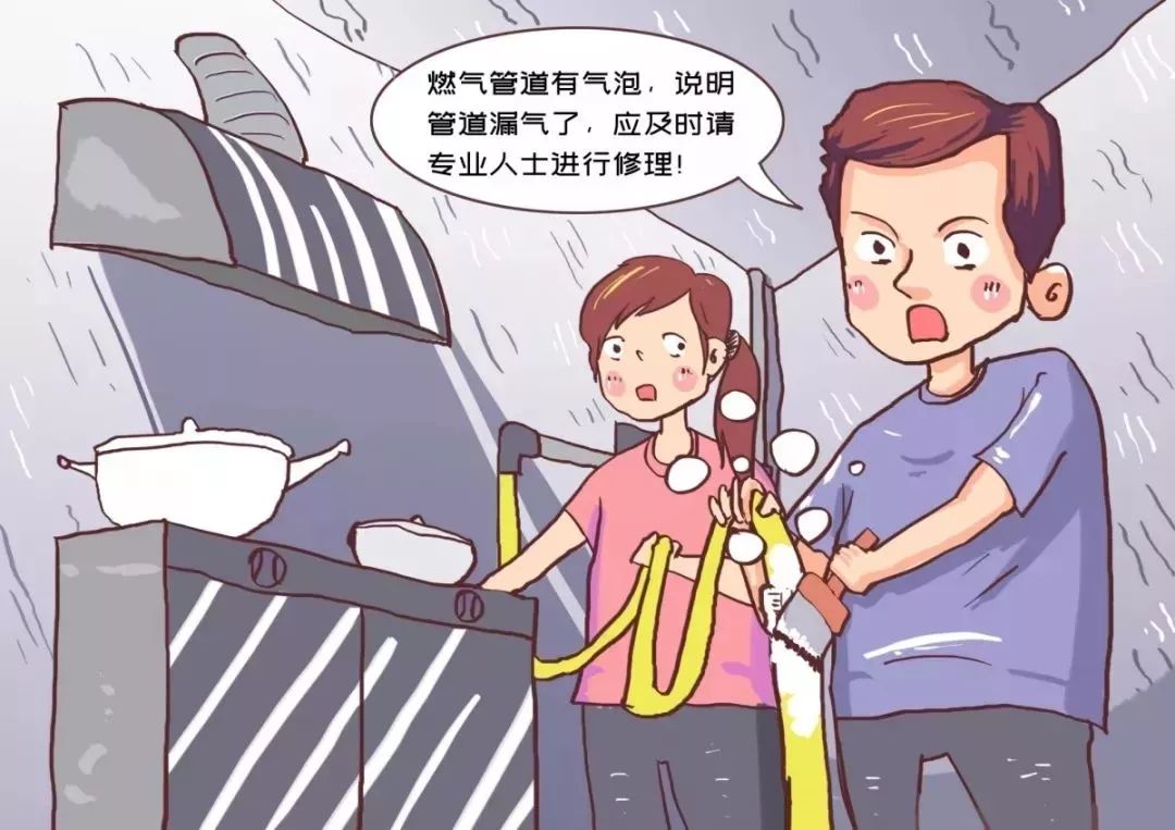 可用肥皂水,涂抹在膠管的連接處,如果有氣泡,說明燃?xì)庹谛孤?/span>